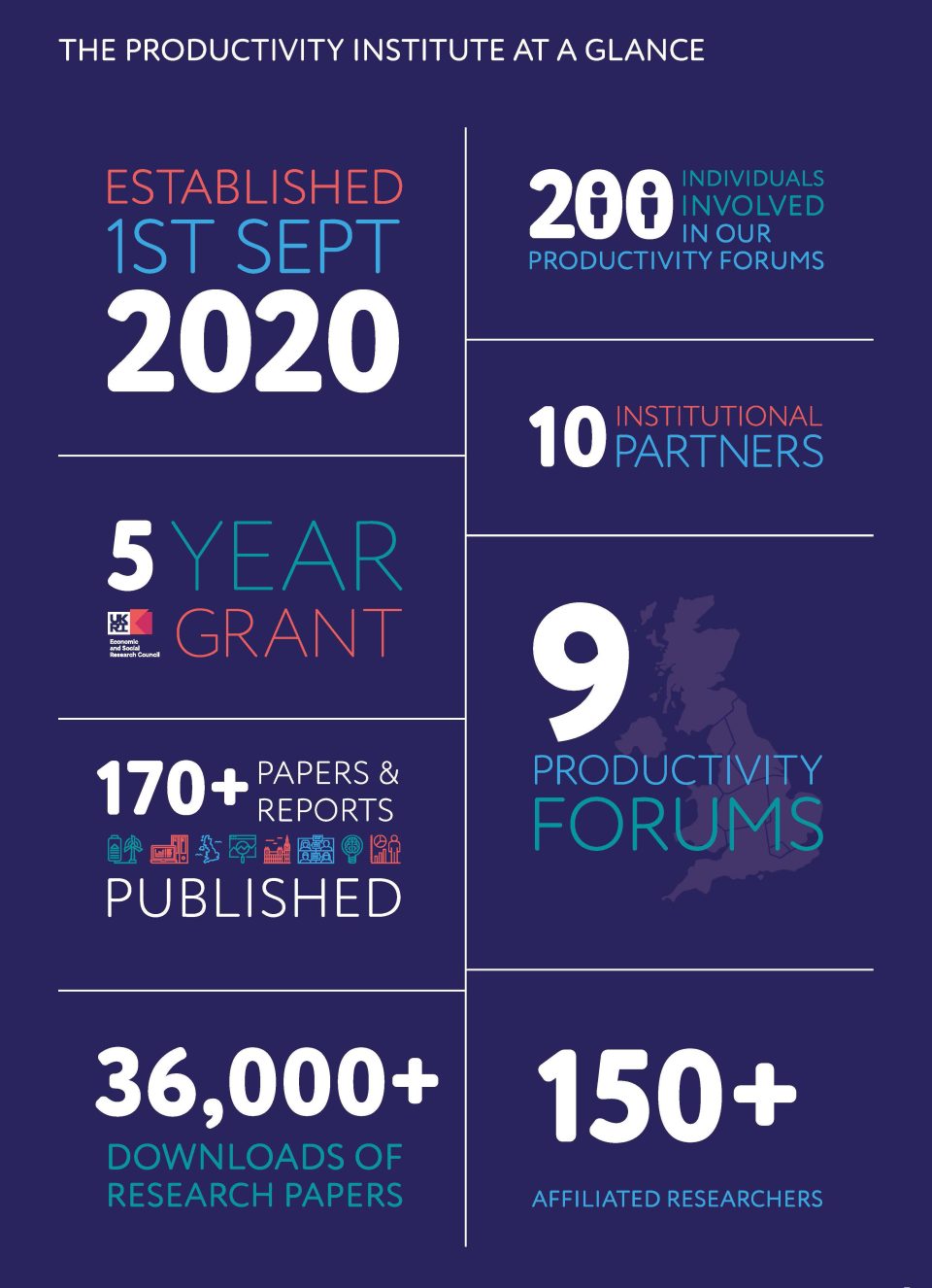 The Productivity Institute is a UK-wide research organisation dedicated to understanding and addressing the country’s longstanding productivity challenges. Funded by the Economic and Social Research Council (ESRC), we collaborate with a network of leading universities and industry partners to drive meaningful change.