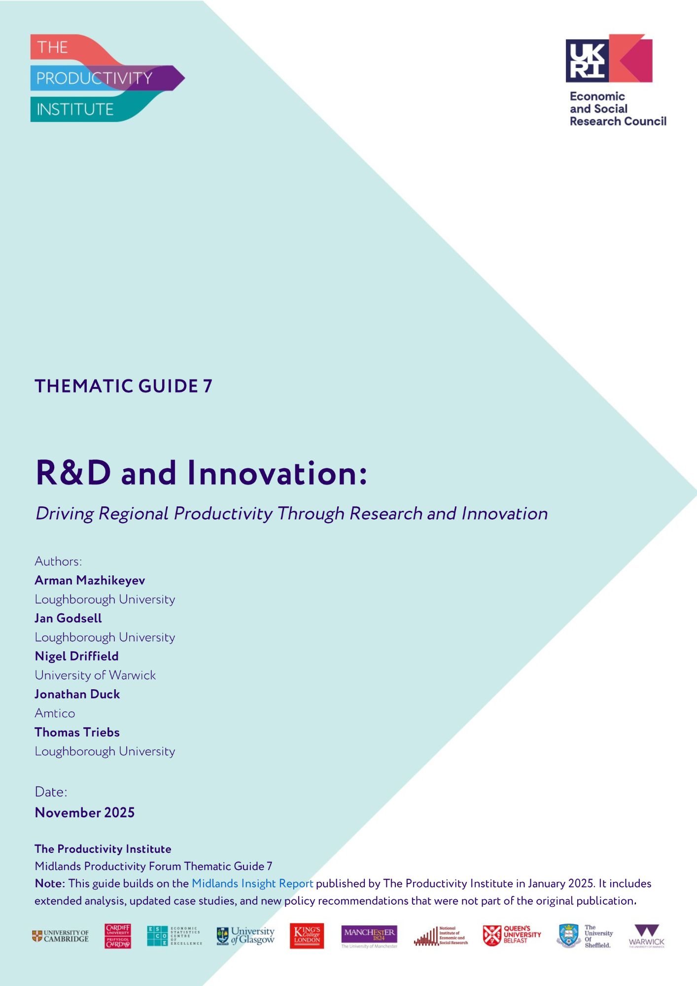 The Midlands Productivity Forum is led by the University of Warwick. It is involved in the implementation of research insights, the design of practical business and policy interventions, and in providing input to the development of the Institute’s future research agenda.