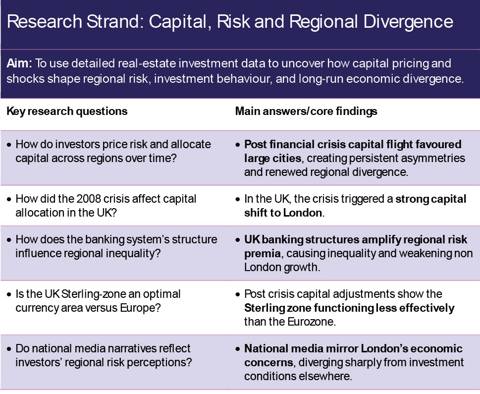 Highly liquid London‑centred financial systems, combined with limited local institutional capabilities of financial institutions, generate deep insider–outsider divides that disadvantage economically weaker regions. New empirical evidence shows that post‑2008 capital markets have persistently priced most UK regions outside London and the South East as high‑risk, reinforcing regional divergence.